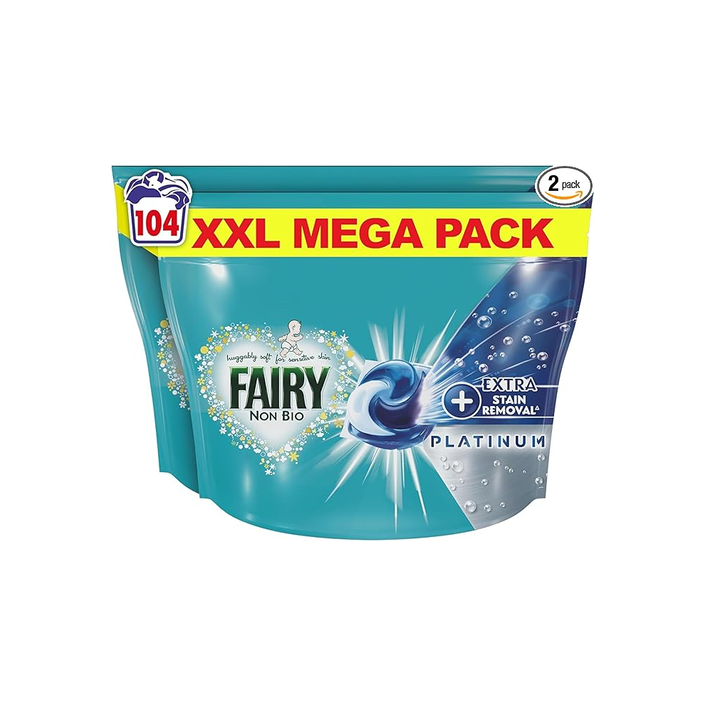 Fairy Non Bio Platinum PODS? Washing Liquid Capsules, 104 Washes (52x2), With Extra Stain Removal