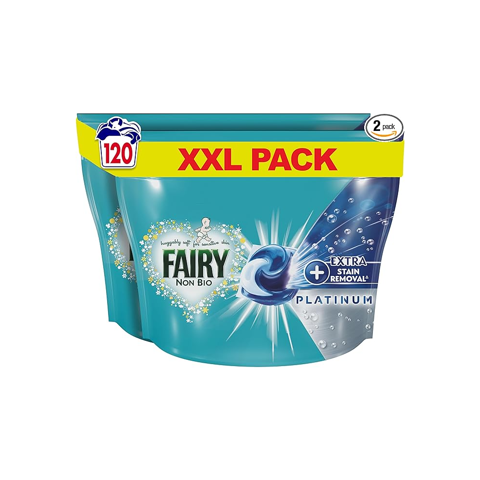 Fairy Non Bio Platinum Pods Washing Capsules - Extra Stain Removal, 120 Washes (60x2) - Skin-Safe & No.1 for Sensitive Skin (Code 81753716)