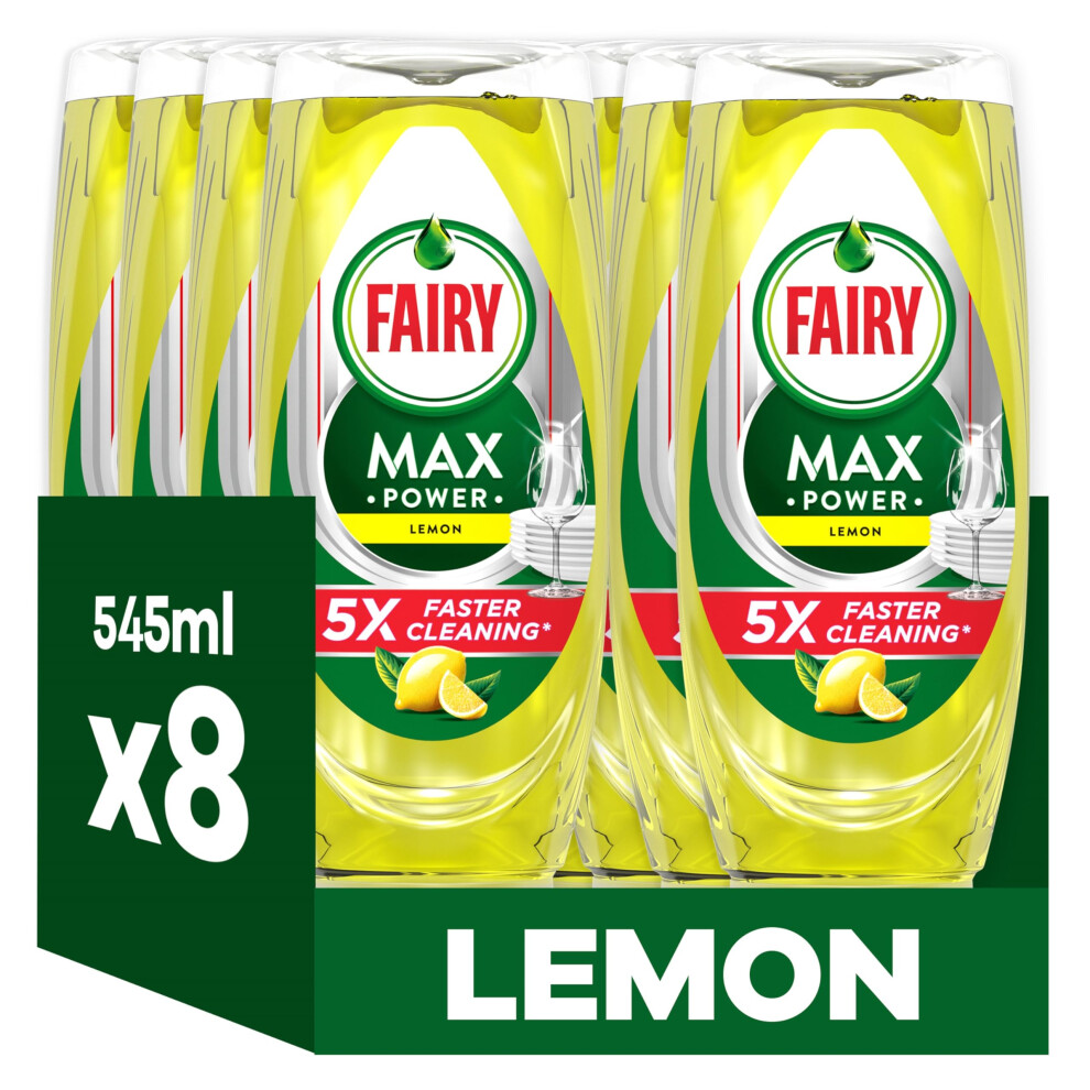 Fairy MaxPower Washing Up Liquid Lemon 8 x 545 ML Easy Effortless Cleaning