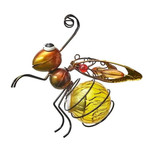 GREOHNMPAW Solar Iron Insect Statue with LED Fairy Light Outdoor Waterproof Hanging Tree Ornament for Fence Yard Art Decor Easy Install Easy to Use Yellow