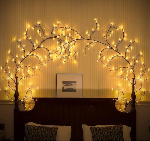 Ciskotu Willow Vine Twig Wall Lights 2PCS: 144 LED Plug in Powered, Warm White with Fairy Tree Light for Wall Indoor Bedroom Living Room Home Christmas Decor