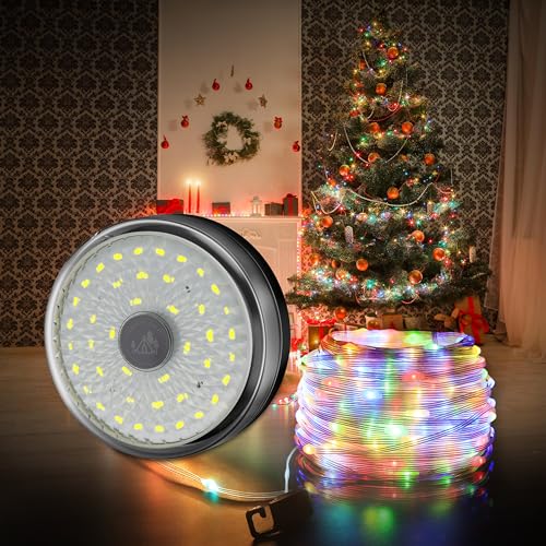 Retractable Christmas Lights 10M/32.8FT, 4000mAh Rechargeable Fairy Light with 8 Lighting Modes, Quick Storage, Waterproof Camping String Lights for Indoor, Outdoor, Yard, Christmas Decor