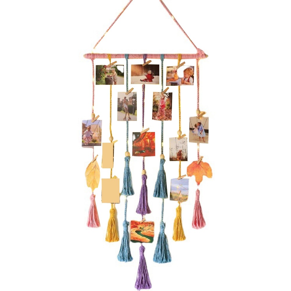 Wall Hanging Picture Display Macrame with Fairy Light and Clip Boho Woven9613