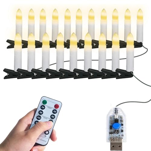 Gresonic Christmas Tree Candle with Clips, 20LED Flameless Flickering Warm White 8 Modes USB Powered Fairy Light with Remote Control Timer Dimmable for Home Party Indoor Outdoor Xmas Tree Decor