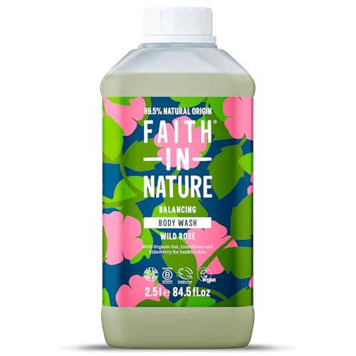 Faith In Nature Natural Wild Rose Body Wash, Balacing Shower Gel, Vegan & Cruelty Free, No SLS or Parabens, 2.5L Refill
