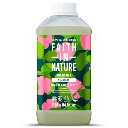 Faith In Nature Natural Wild Rose Shampoo, Nourishing for Normal Hair & Scalp, Vegan & Cruelty Free, No SLS, Silicones or Parabens, 2.5L Refill