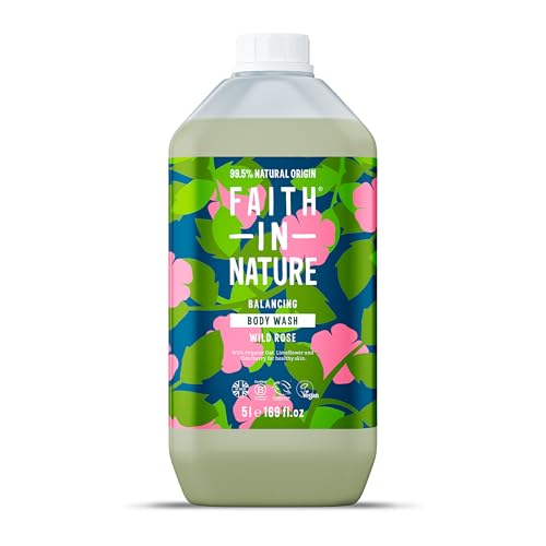 Faith In Nature Natural Wild Rose Body Wash, Balacing Shower Gel, Vegan & Cruelty Free, No SLS or Parabens, 5L Refill Pack