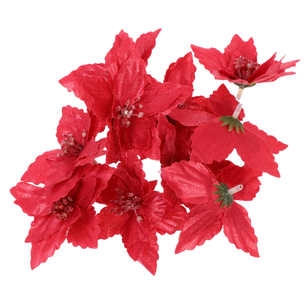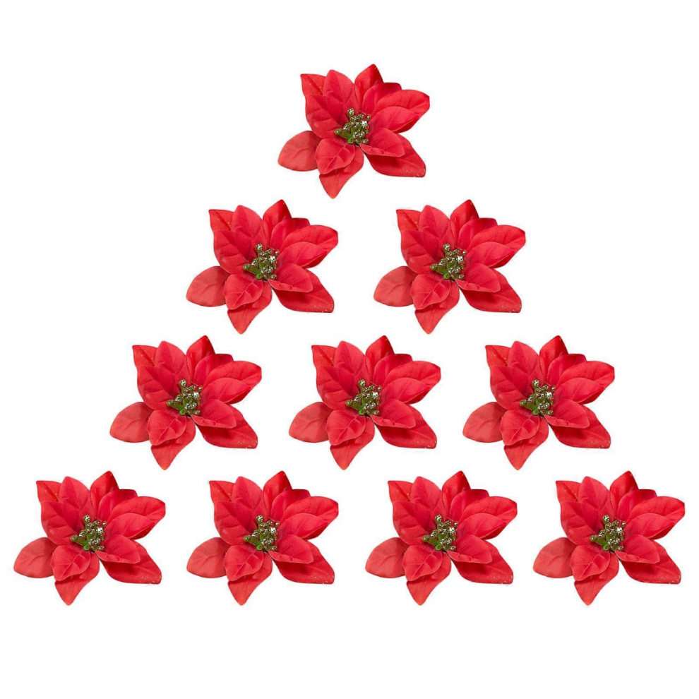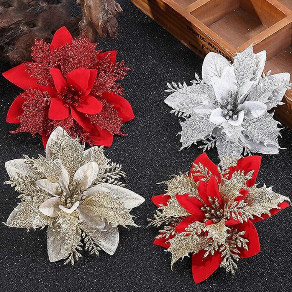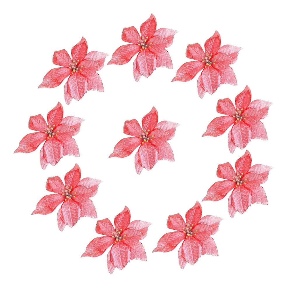 10PCS Artificial Fake Flowers Christmas Tree Poinsettia Glitter DecorationRed