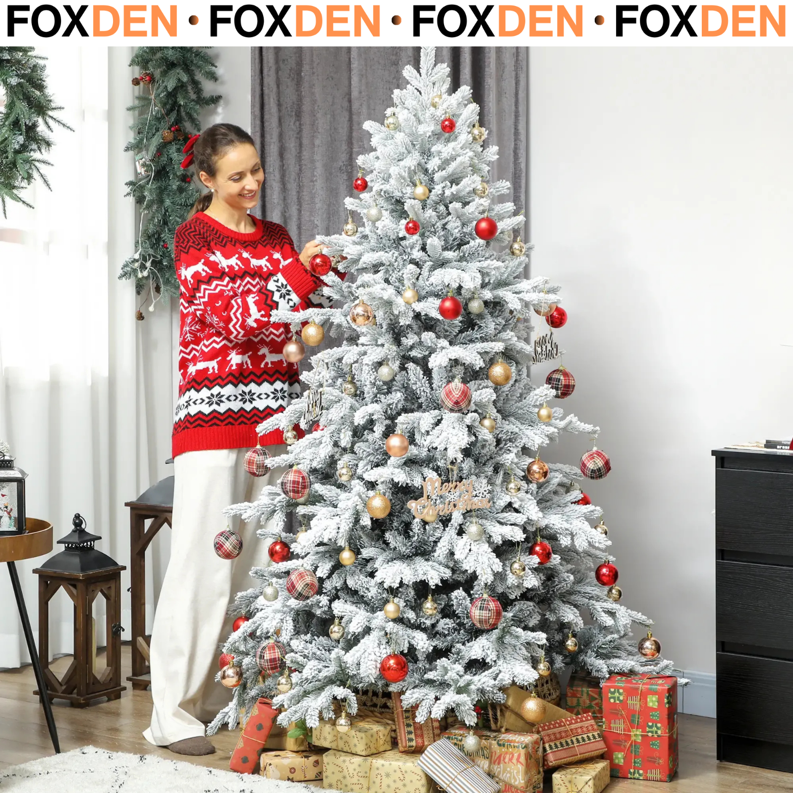 6ft Snow Flocked Fake Christmas Tree White Hinged Xmas Tree Sturdy Metal Base