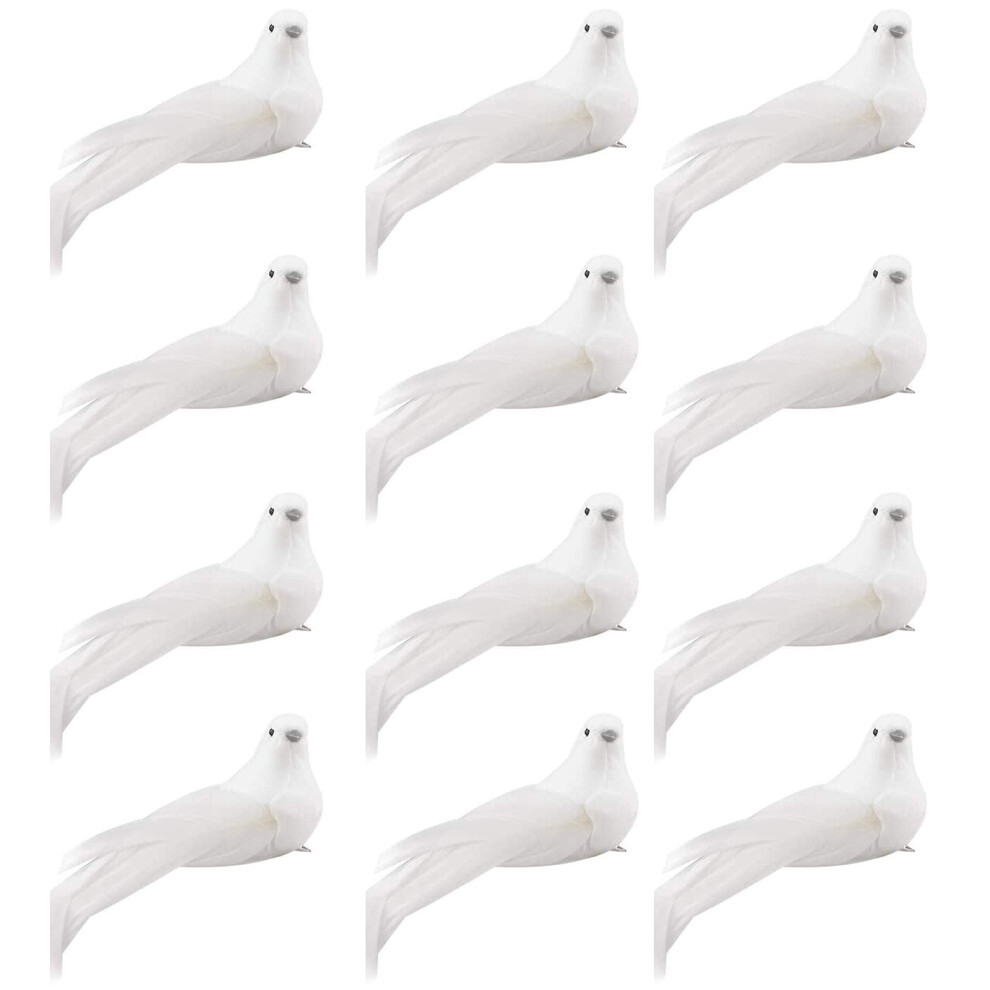 12 Pcs Fake Doves Birds Christmas Tree Ornaments Artificial