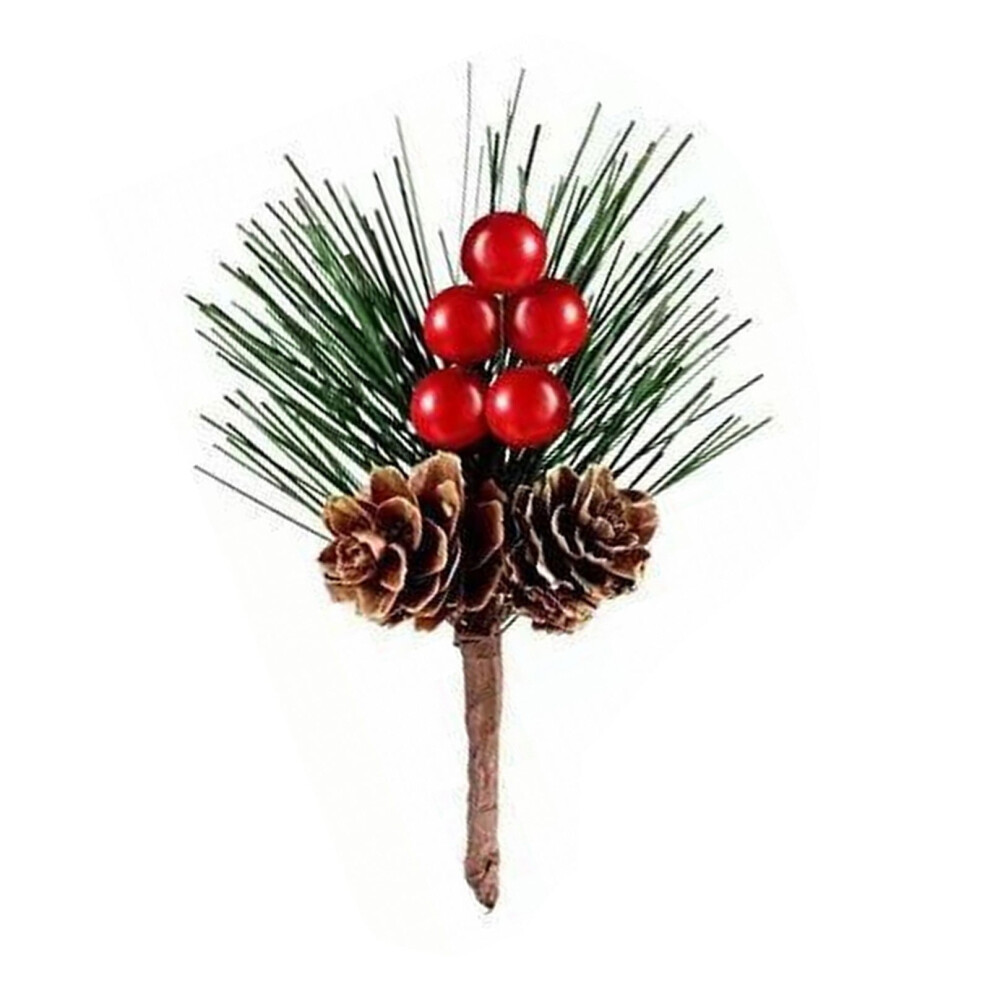 10pcs Vivid Simulation Pine Cones Fake Pine Needles Christmas Tree CuttingsRed22X8CM