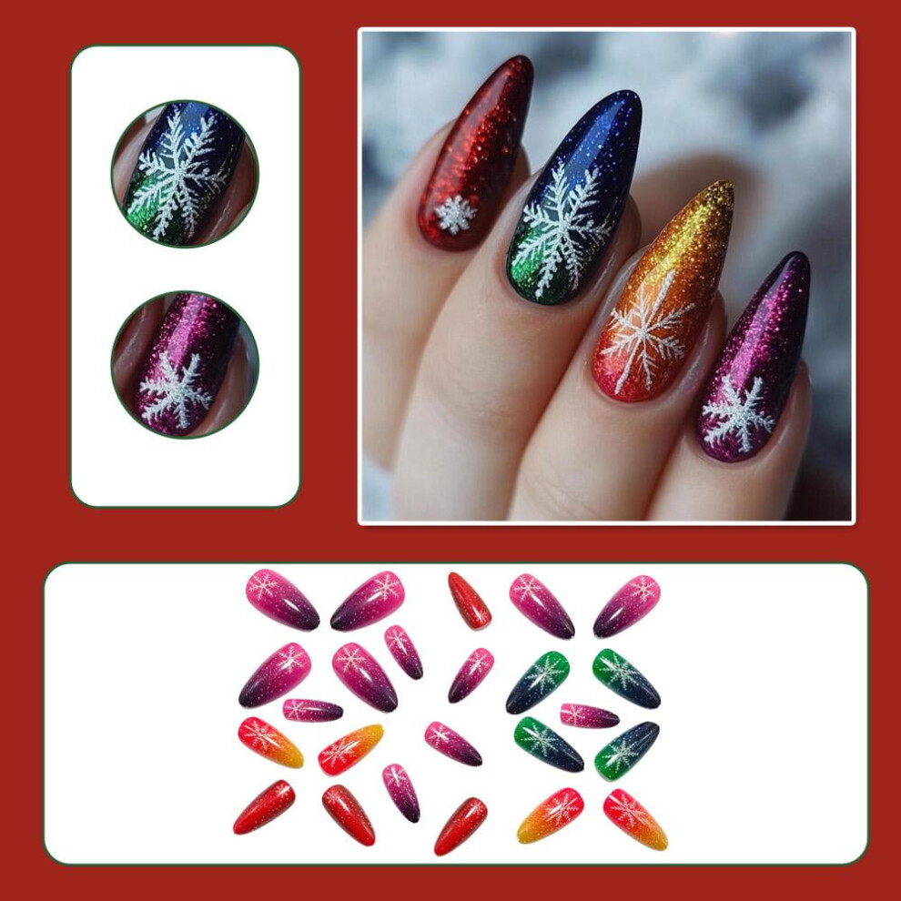 Christmas Press On Nails 24pcs Glossy Almond Acrylic Fake Nails with Christmas Tree Design Reusable