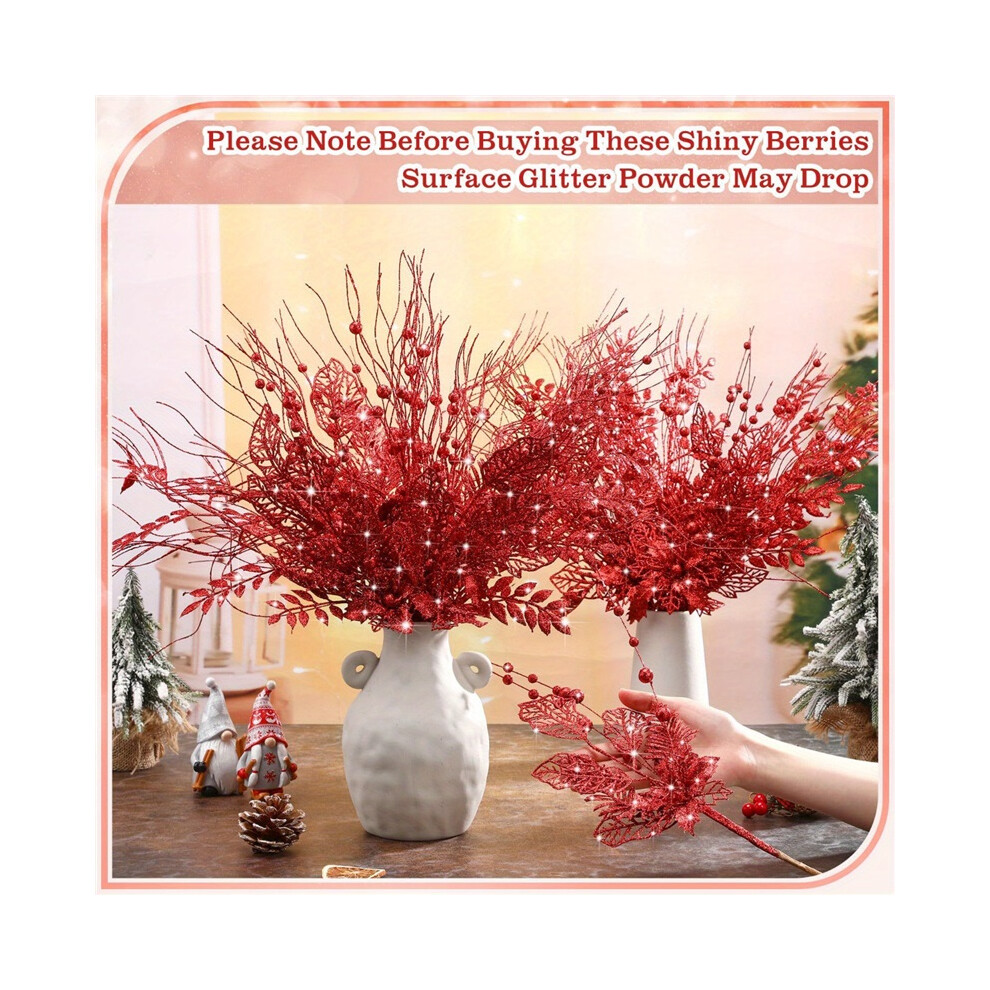 Christmas Picks Floral Picks Artificial Red Berry Stems Branches Fake Christmas Tree Picks Xmas Valenintes Wreath Crafts Decorations 1PACK