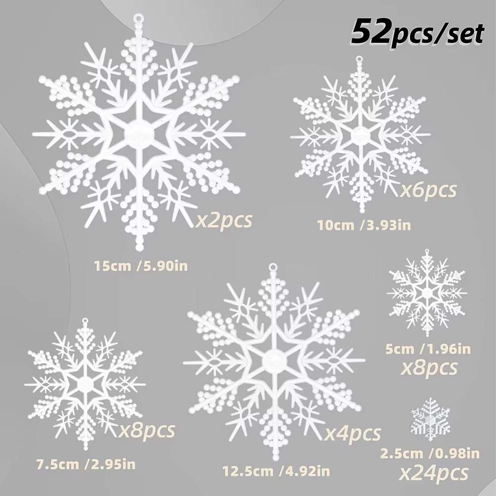52pcs Fake Snowflakes Christmas Tree Hanging Ornament Holiday Themed Decoration