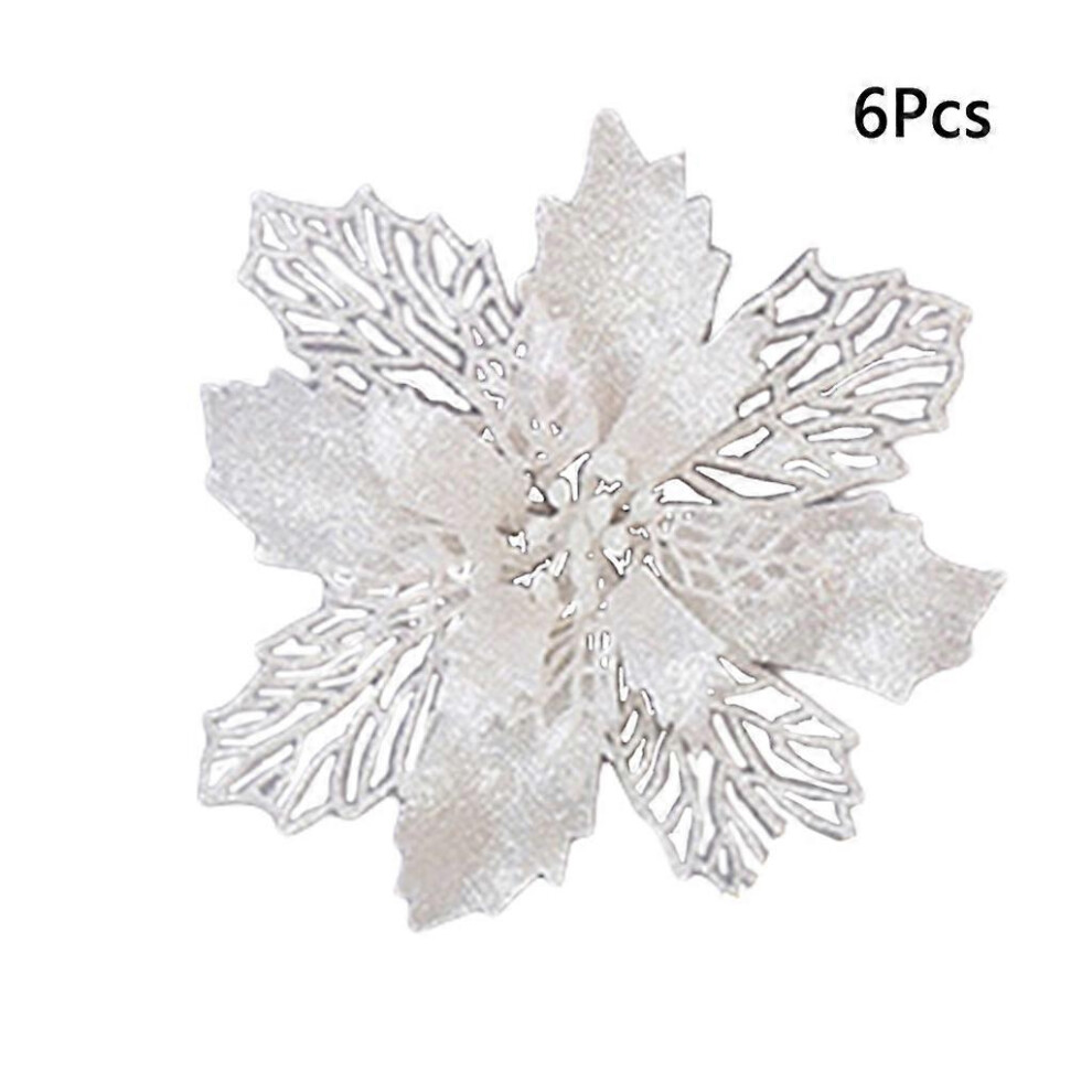 (As show, One size) 6pcs Artificial Christmas Flowers Glitter Fake Flowers Merry Christmas Tree Decorations for Home Gift Xmas Ornament
