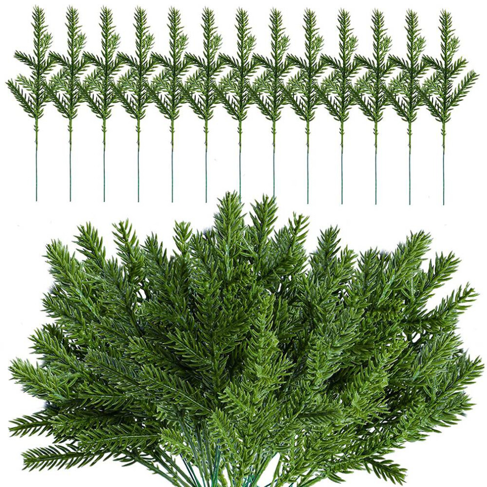 120 Pieces Artificial Pine Needles Branches Christmas Fake Greenery Tree DIY Garland