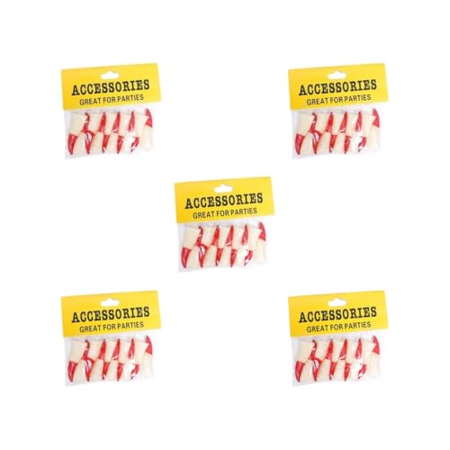 OJREEUB 5 set of 10x Witch Fingers Scary Fake Witch Nails Halloween Costume Accessories Red, 6x2cm