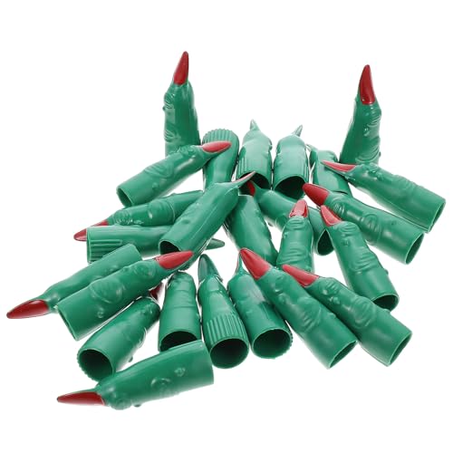 TOBBOMEY 20Pcs Halloween Fake Witch Finger Nails with Red Tips, Plastic Zombie Finger Nail Props for Masquerade, Cosplay, Halloween Party Accessories