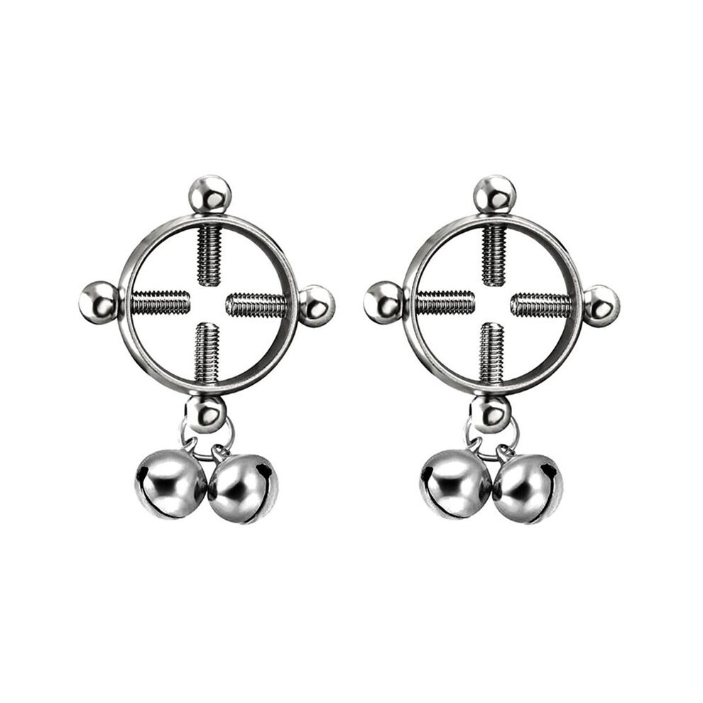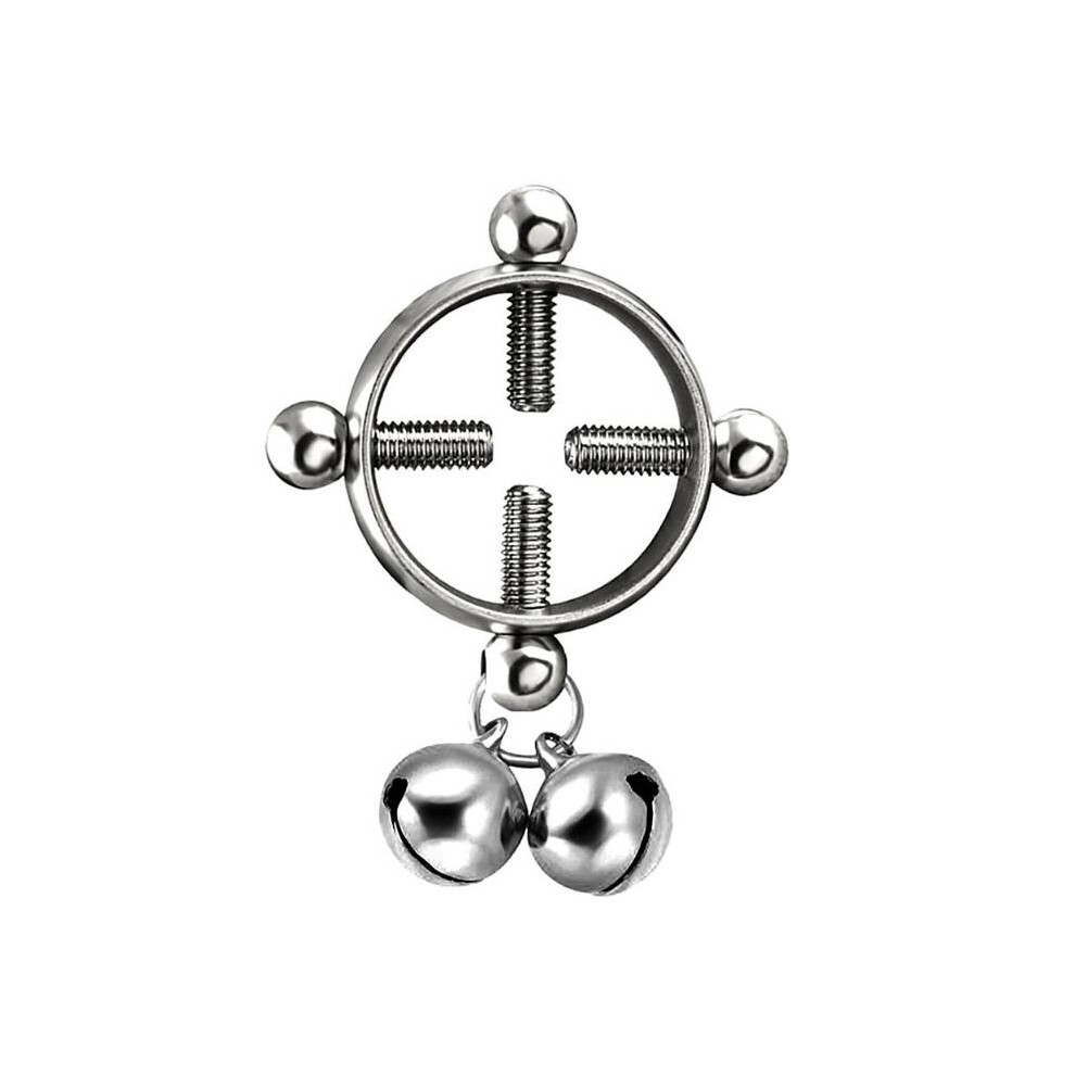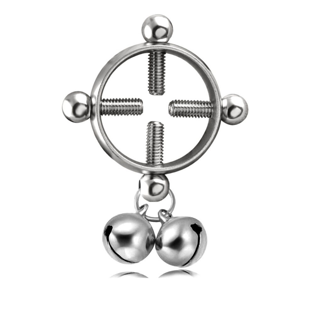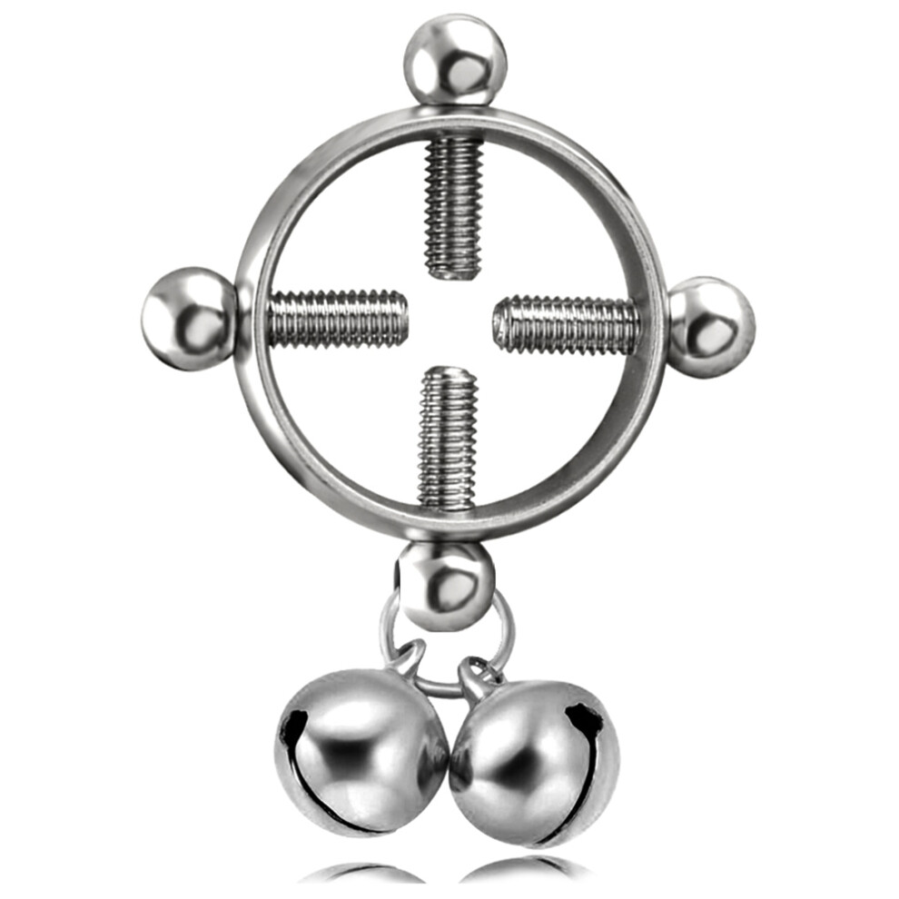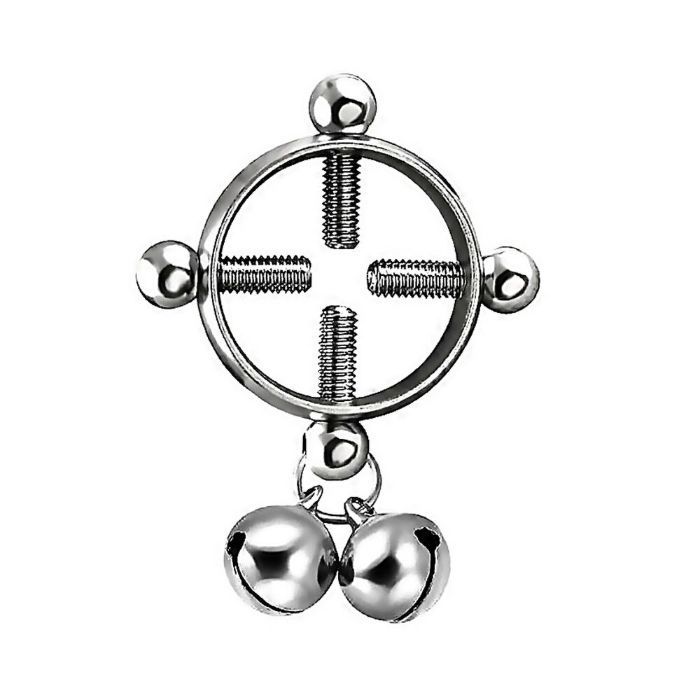 Non-Piercing Nipple Rings, Stainless Steel Fake Nipple Rings with Adjustable Screw Design and Bell Decoration, Round Shape Lightweight Clip On Jewelry