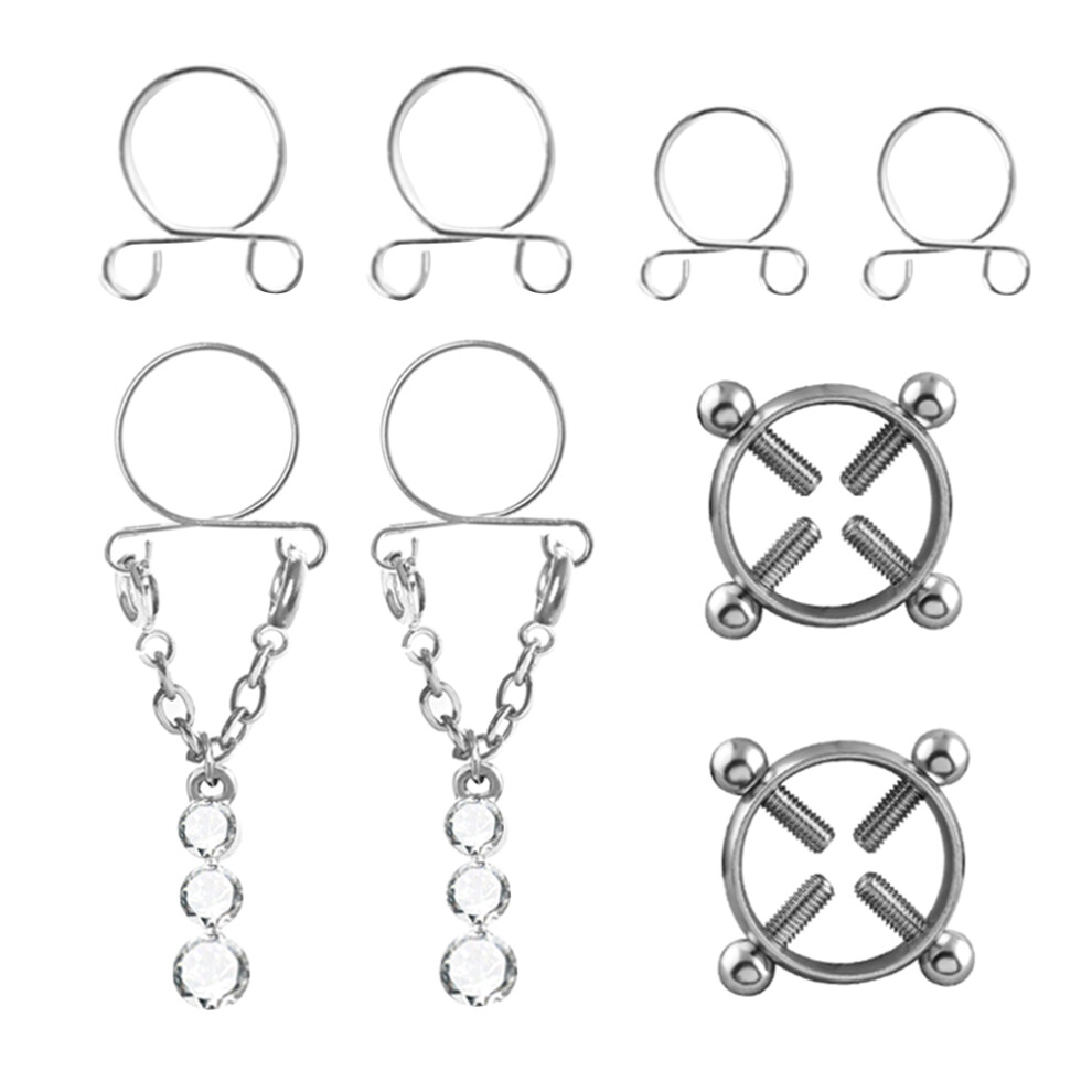 Lightweight And Comfortable Stainless Steel Fake Nipple Rings For Women Adjustable Size Non Piercing Body Jewelry Skin Friendly Design Smooth Surface