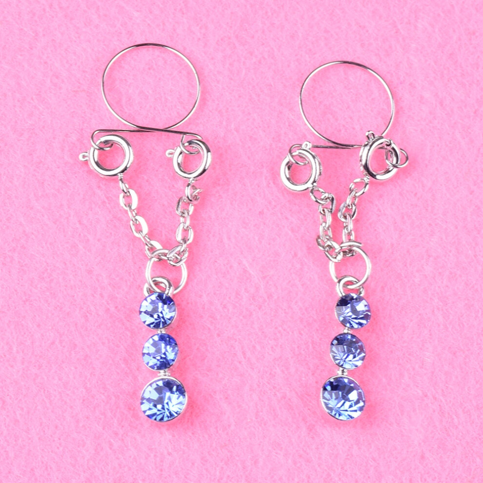Clip On Nipple Ring Jewelry, Clip On Fake Nipple Ring Body Jewelry with Rhinestone Pendant Design, Non Piercing Adjustable Nipple Rings for Sensitive
