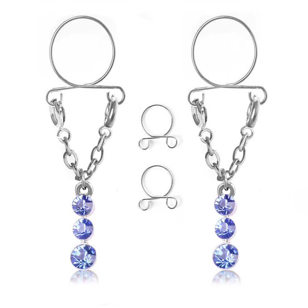 Body Jewelry For Women Lady, Sexy Non Pierced Clip On Fake Nipple Ring With Rhinestone Pendant Design, Shield Cover Adjustable Clamps Piercing Alloy M