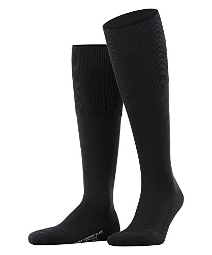FALKE Men's Airport Plus M Kh Wool Cotton Long Plain 1 Pair Knee-High Socks, Black 3000, 10-11