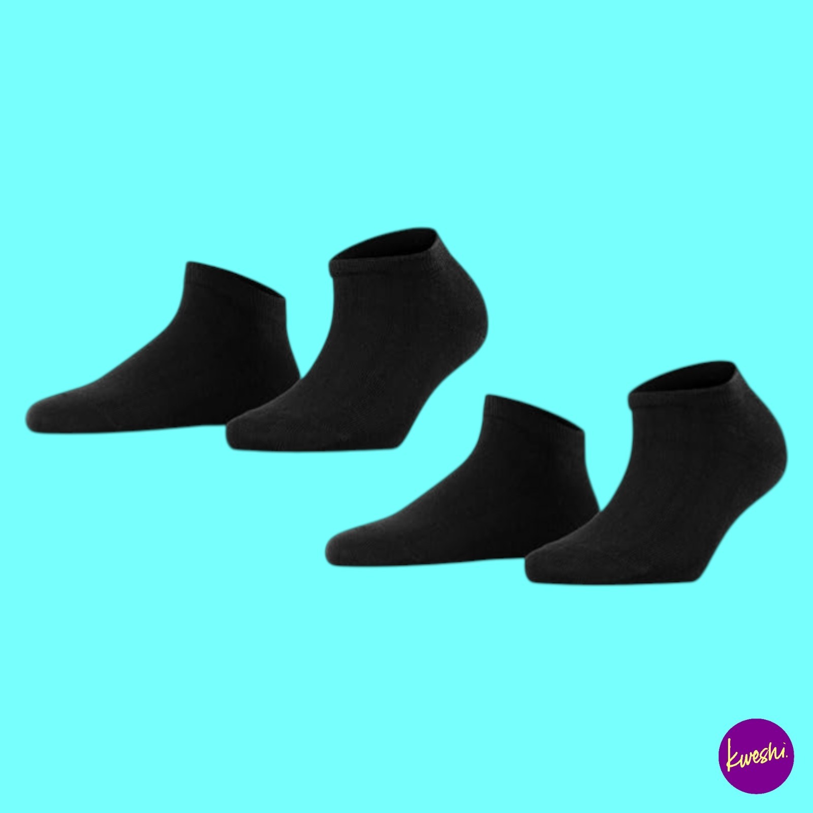 FALKE Women's Cotton Trainer Socks, Happy Double Pack, Black, UK 5.5–8
