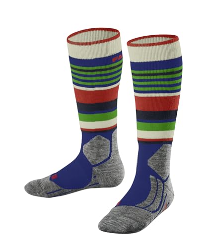 FALKE Unisex Kids SK2 Intermediate K Kh Wool Functional Yarn Warm Thick 1 Pair Skiing Socks, Blue Yve 6714 Trend, 9-11.5