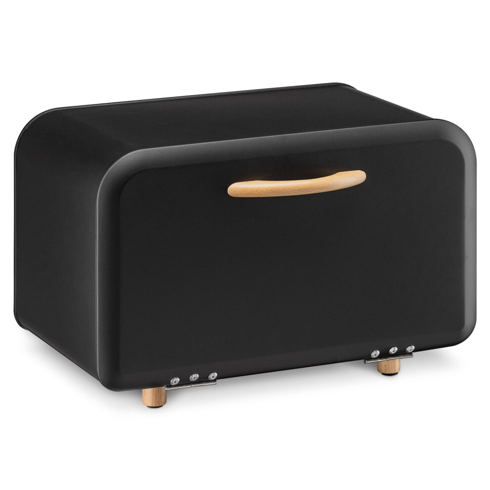 Navaris Bread Bin - Metal Bread Box Storage Tin with Front Opening Drop Down Door for Kitchen Counter or Shelf - Bakery Storage Container - Black