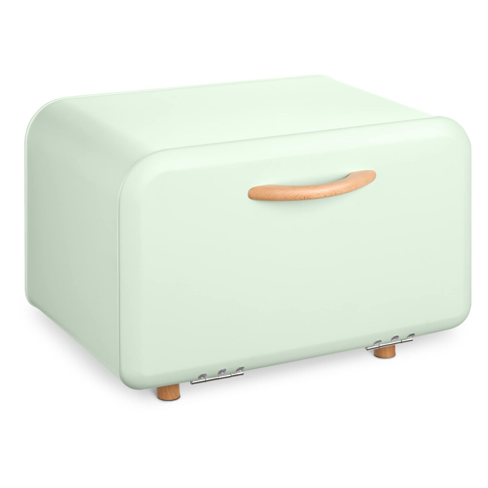 Bread Bin - Metal Bread Box Storage Tin with Front Opening Drop Down Door for Kitchen Counter or Shelf - Bakery Storage Container - Mint Green