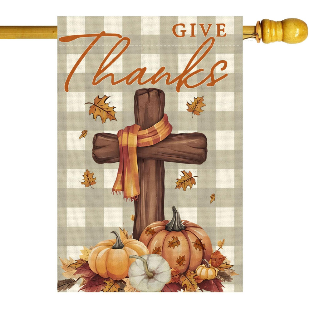 ZAEW Thankful for the Cross Pumpkins Maple Leaves Fruit Harvest Thanksgiving Fall House Flag large 28X40 Inch Big Vertical Double Sided Yard Outdoor