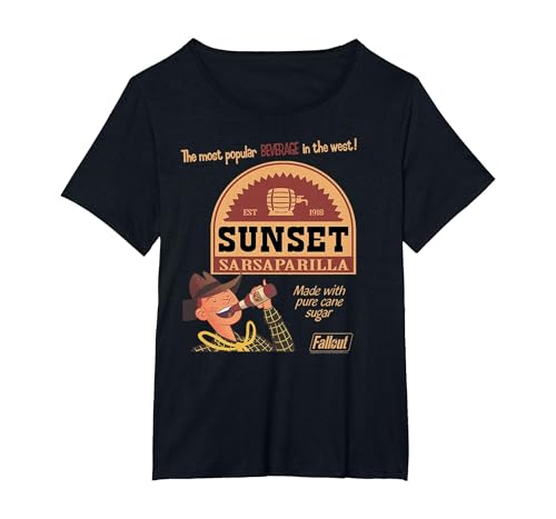 Fallout Video Game Sunset Sarsaparilla Vintage Ad T-Shirt, Women's Plus, Black, 4X