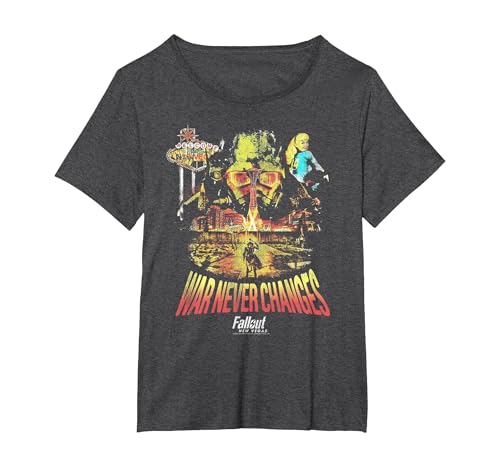 Fallout Video Game New Vegas War Never Changes Collage T-Shirt, Women's Plus, Dark Heather Grey, 4X