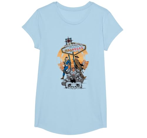 Fallout Welcome to New Vegas Neon Sign with Characters TV T-Shirt, Girls, Baby Blue, Small