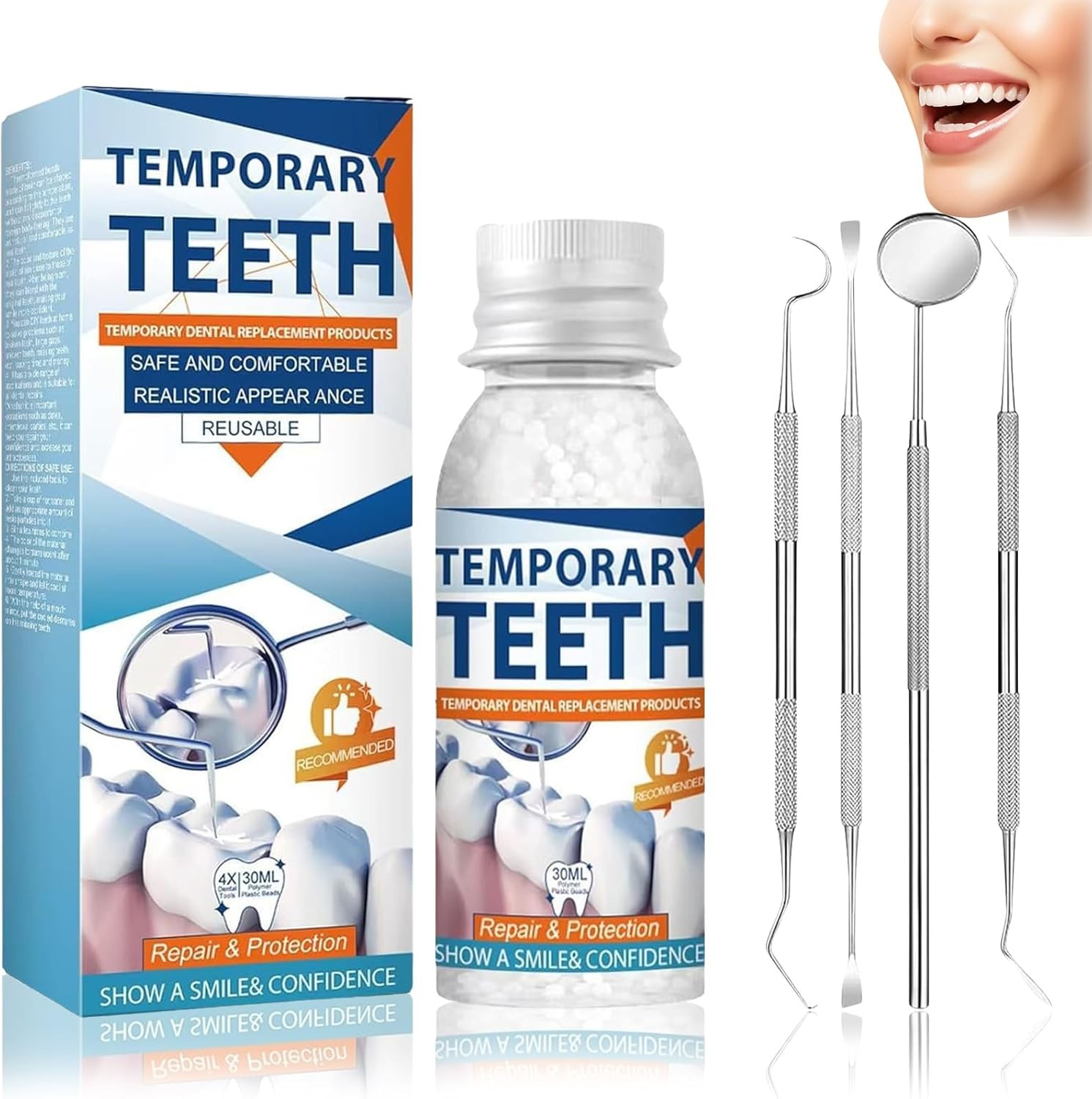 Quick Missing Tooth Repair Kit with 40 Natural-Looking False Teeth, Easy to Use