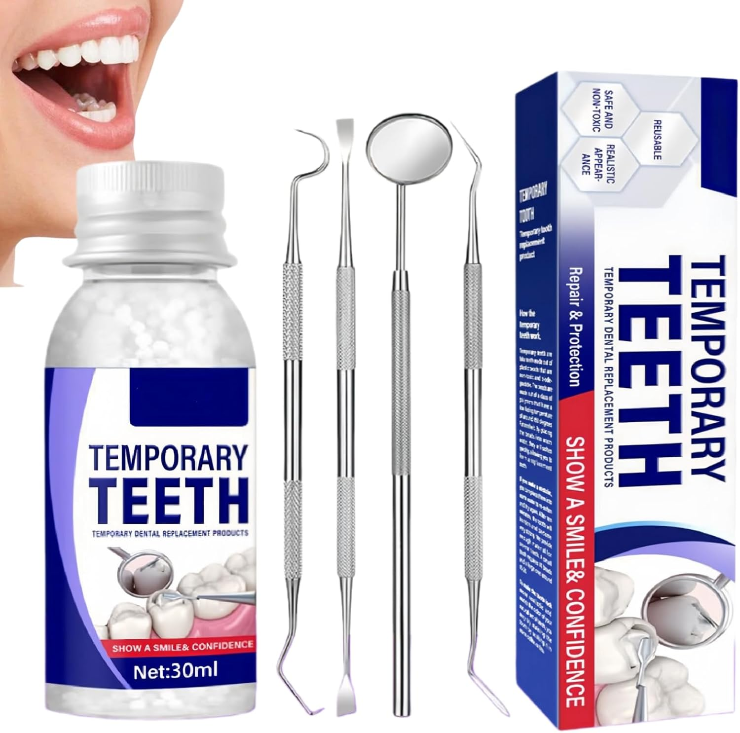 (30ml With Box) Temporary Dental Repair Kit Tooth Filling Lost Fillings Repair Caps False Teeth
