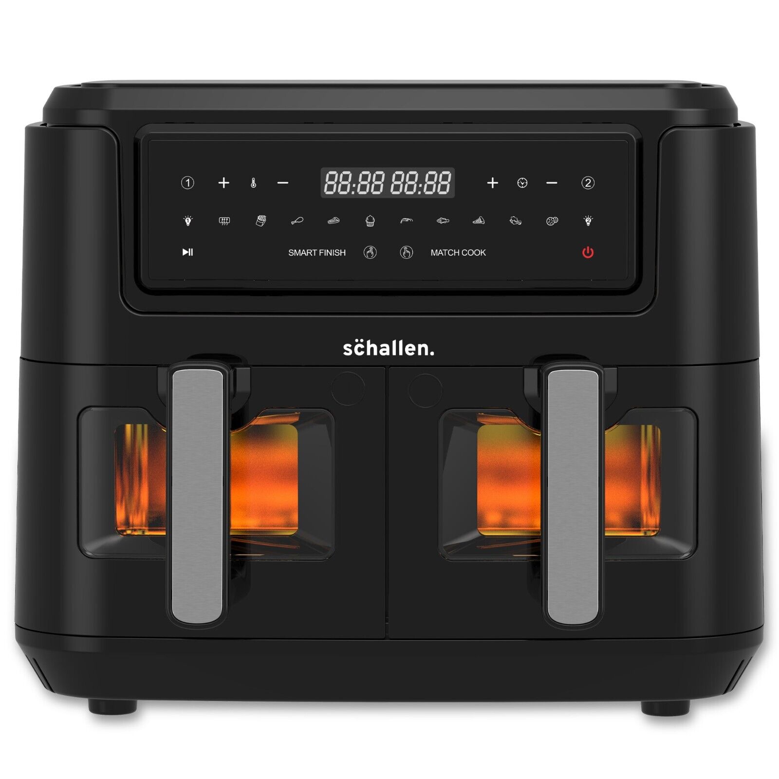 Schallen Dual Air Fryer Smart Timer Energy Saving Large 9L Family Size Cooker