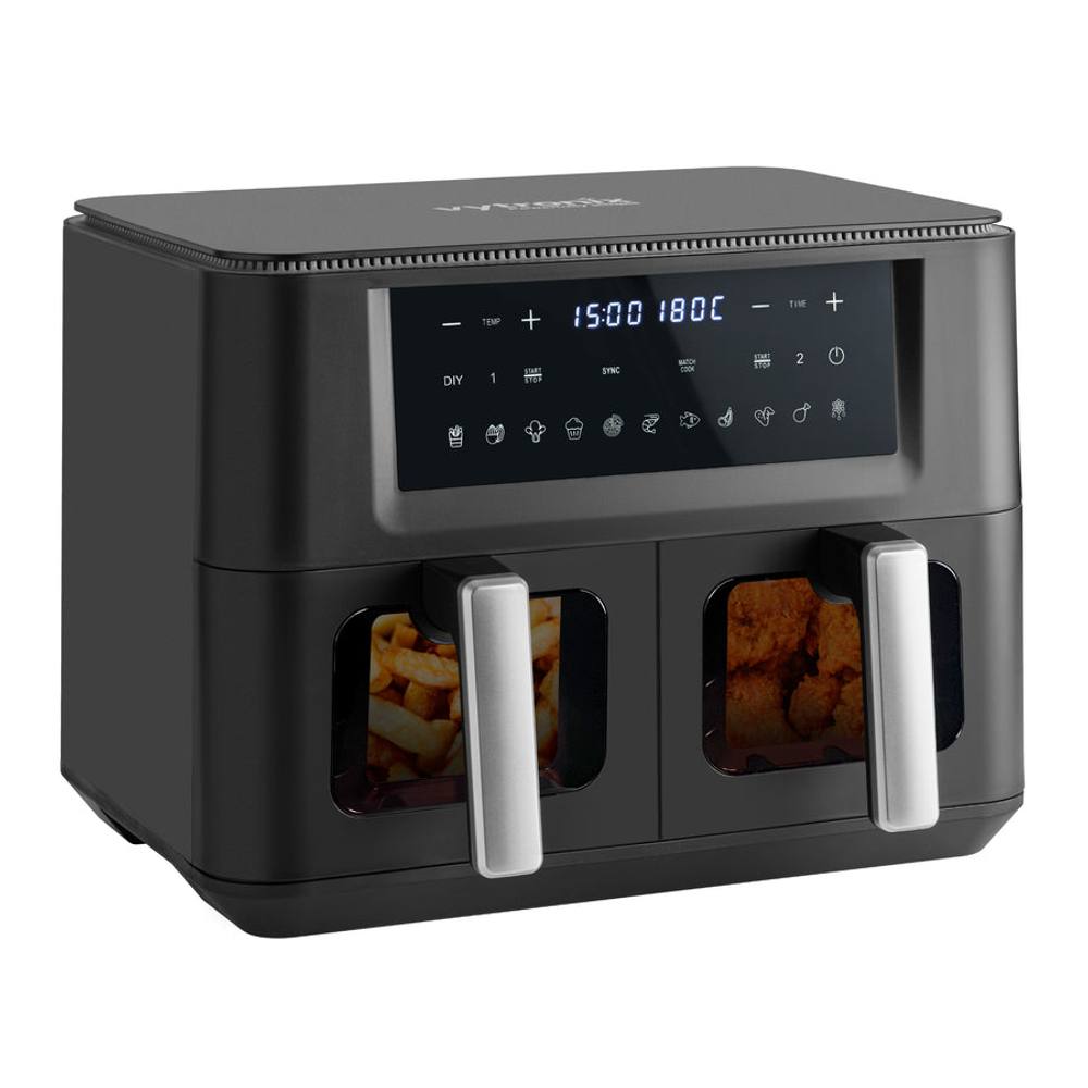 Vytronix Dual View 2 Zone Family Air Fryer 2 Drawer 9L Viewing Windows 2400W in Black
