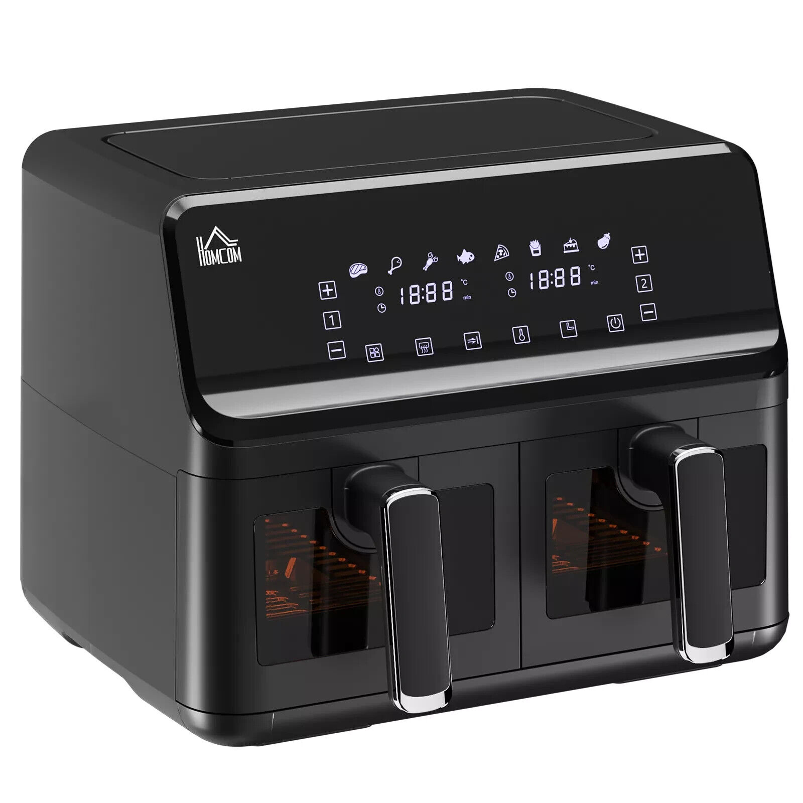 Homcom Family Air Fryer, 8l Double Air Fryer Oven W/ 8 Presets, Digital Display, Recipe Cookbook, 60min Timer For Oil Free & Low Fat, 2500w, Black