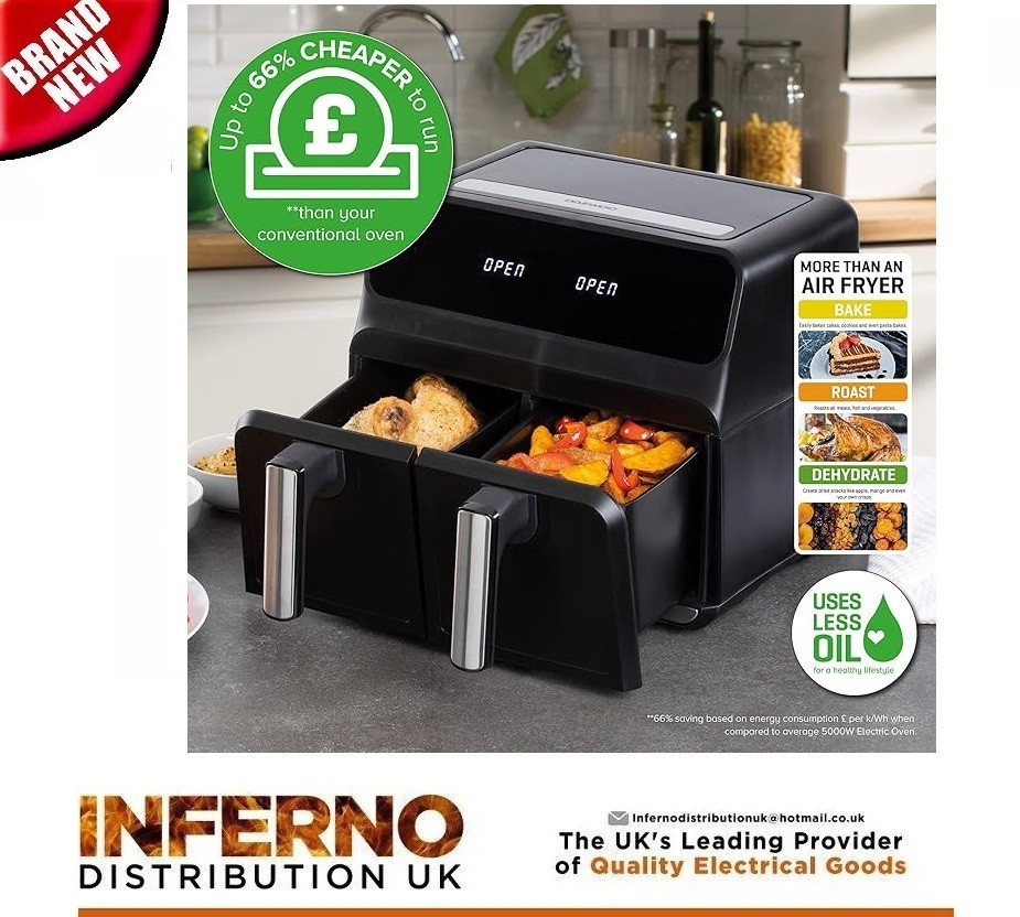 DAEWOO 8L Family Size Duel Zone Roast Grill Dehydrate Oven Air Fryer RRP £89.99