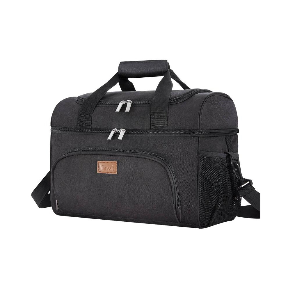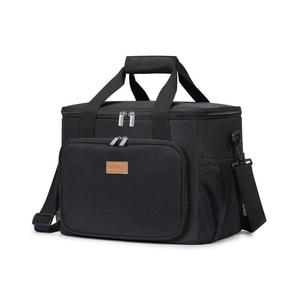 (Black - 2-Layer - 23L) Lifewit Cooler Bag, Shopping Bag,Soft Insulated Picnic Family Cool Bag, Thermal Lunch Bag for Work, Beach Picnic, Camping