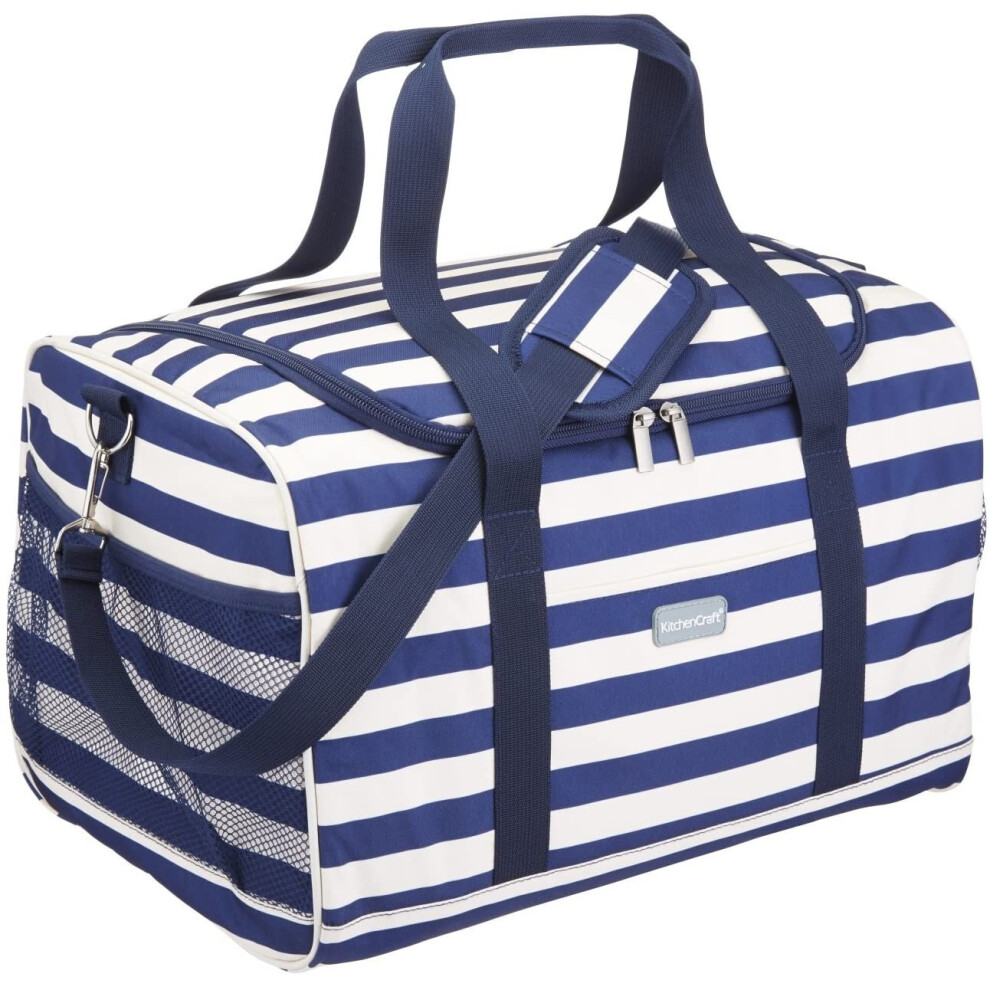 KitchenCraft We Love Summer Extra-Large Nautical-Striped Family Cool Bag, 30 L (6.5 gal) - Navy Blue/White