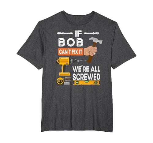 Funny if Bob Can't fix it no one can Handyman Carpenter T-Shirt, Men's Big and Tall, Dark Heather Grey, 2X Tall