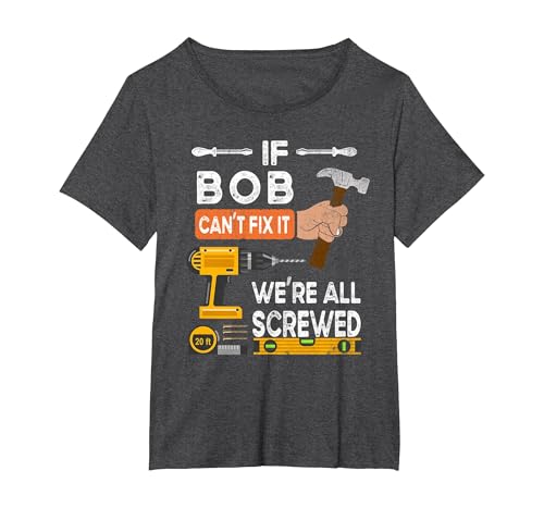 Funny if Bob Can't fix it no one can Handyman Carpenter T-Shirt, Women's Plus, Dark Heather Grey, 2X