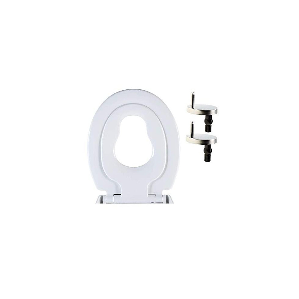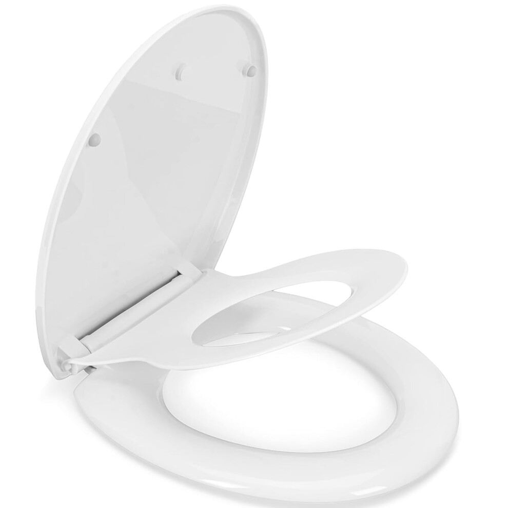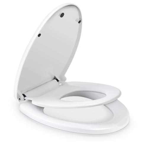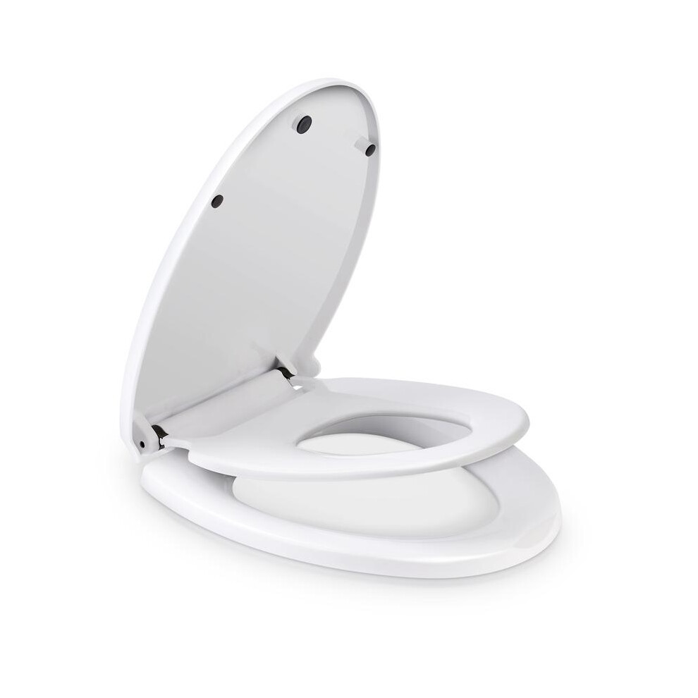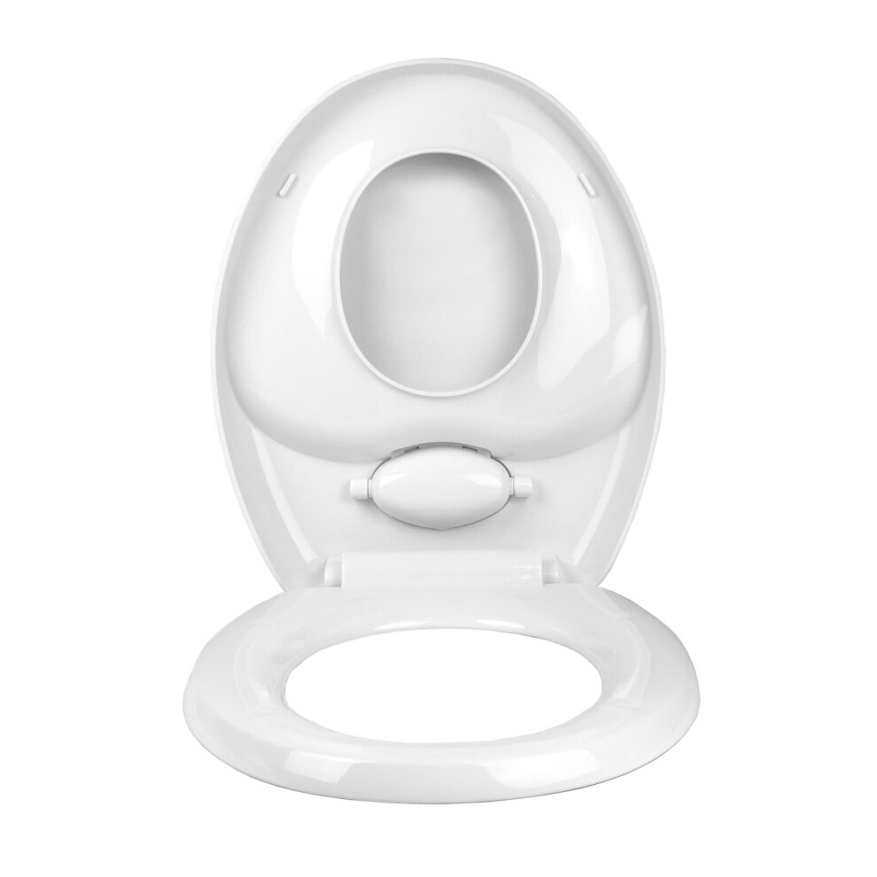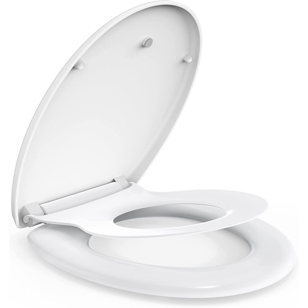 Ram® White Soft Close Family Toilet Seat with Quick Release Function Family Toilet Seat with Built in Child Seat Children Potty Training Toilet Seat with Adjustable Hinges, O Shape