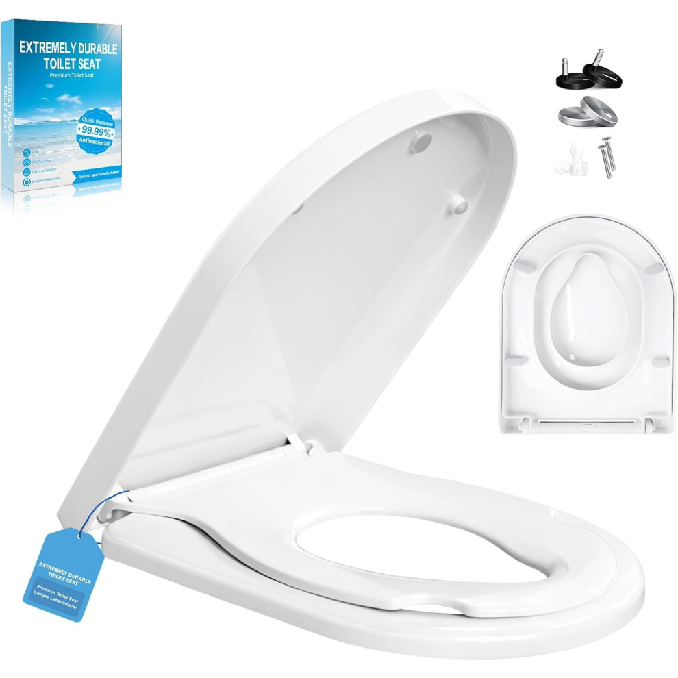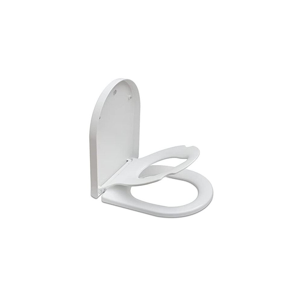 Family Toilet Seat, SREWOHS PRO PP D Shaped Toulet Seat Soft Close,Easy Assembly & Quick Release,Universal Removable Toliet Lid,45 x 37CM,White