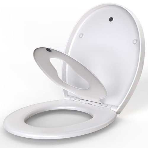 Soft Close Toilet Seat, Family Toilet Seat with Quick Release Button, Easy Clean Resin Hinges
