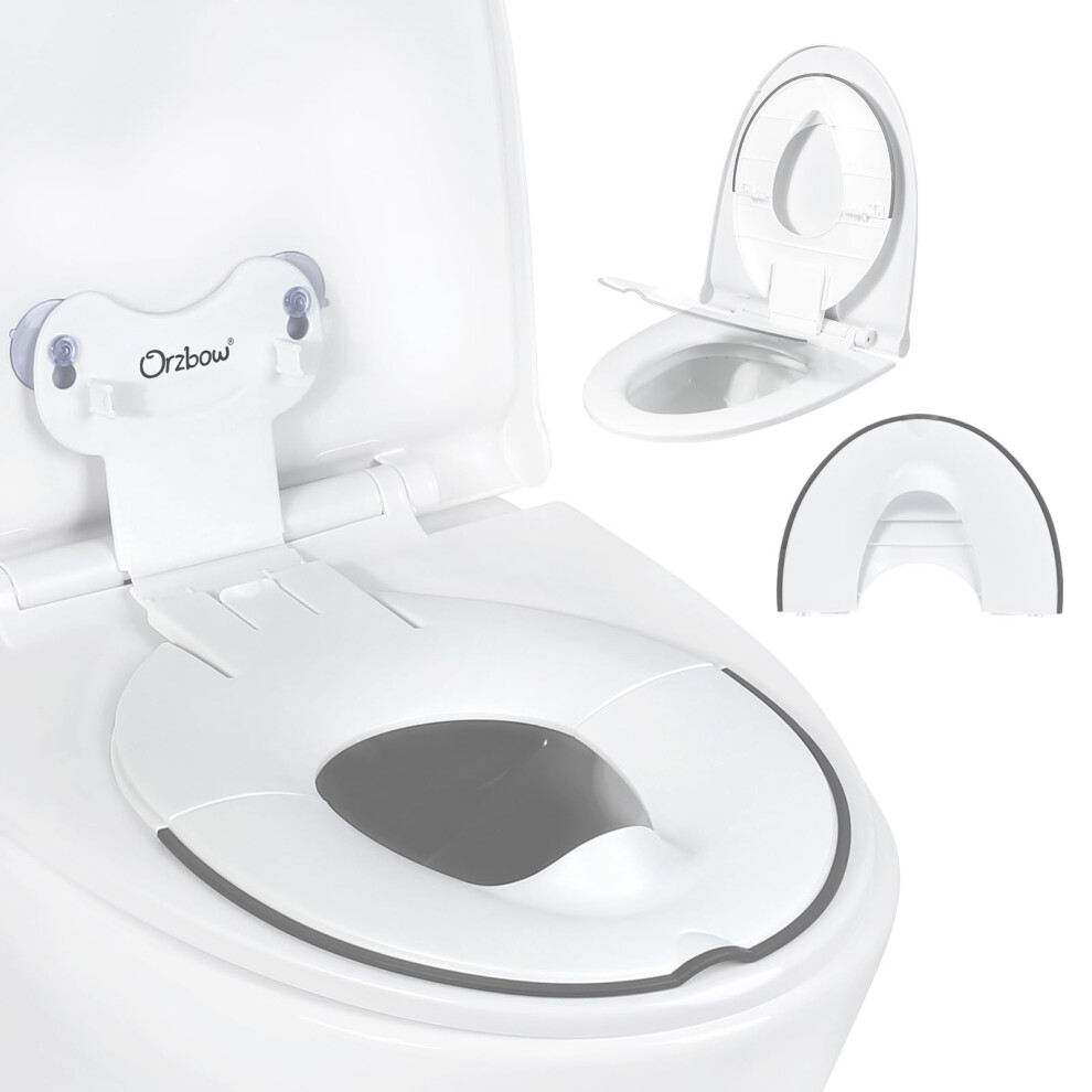 Orzbow Foldable Toddler Toilet Seat, Portable Toilet Training Seats with Soft Rubber Urine Barrier, Universal Family Toilet Seat with Suction Cup, Adjustable Length, Easy to Install, White