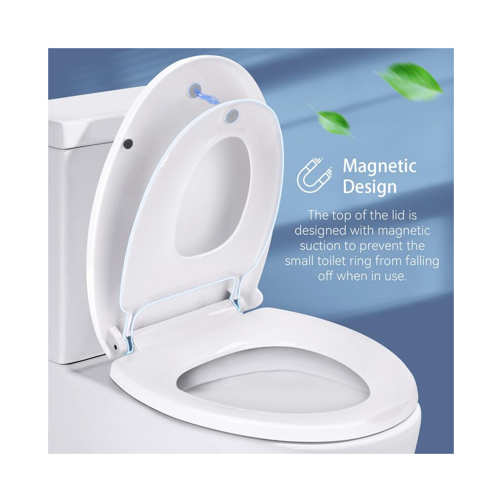 Premium Family Toilet Seat 2-in-1 Soft Close Toilet Seat with Detachable Child Seat, Magnetic Toilet Lid with Quick Release and 360 Degree Adjustable Hinges, Oval Toilet Seats for Toddlers Adults